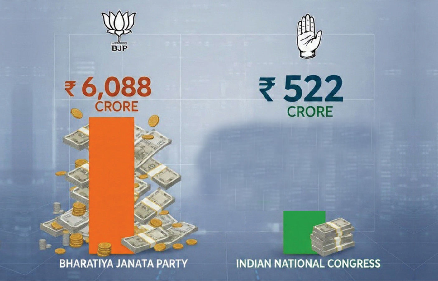 देश की सबसे बड़ी पार्टी BJP को 2024-25 में दूसरी पार्टियों के मुकाबले सबसे ज़्यादा फंड मिला