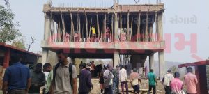 डांग के बरम्यावाड प्राइमरी स्कूल भवन की कमजोर स्लैब और टूटी बीम से अभिभावक चिंतित हैं।