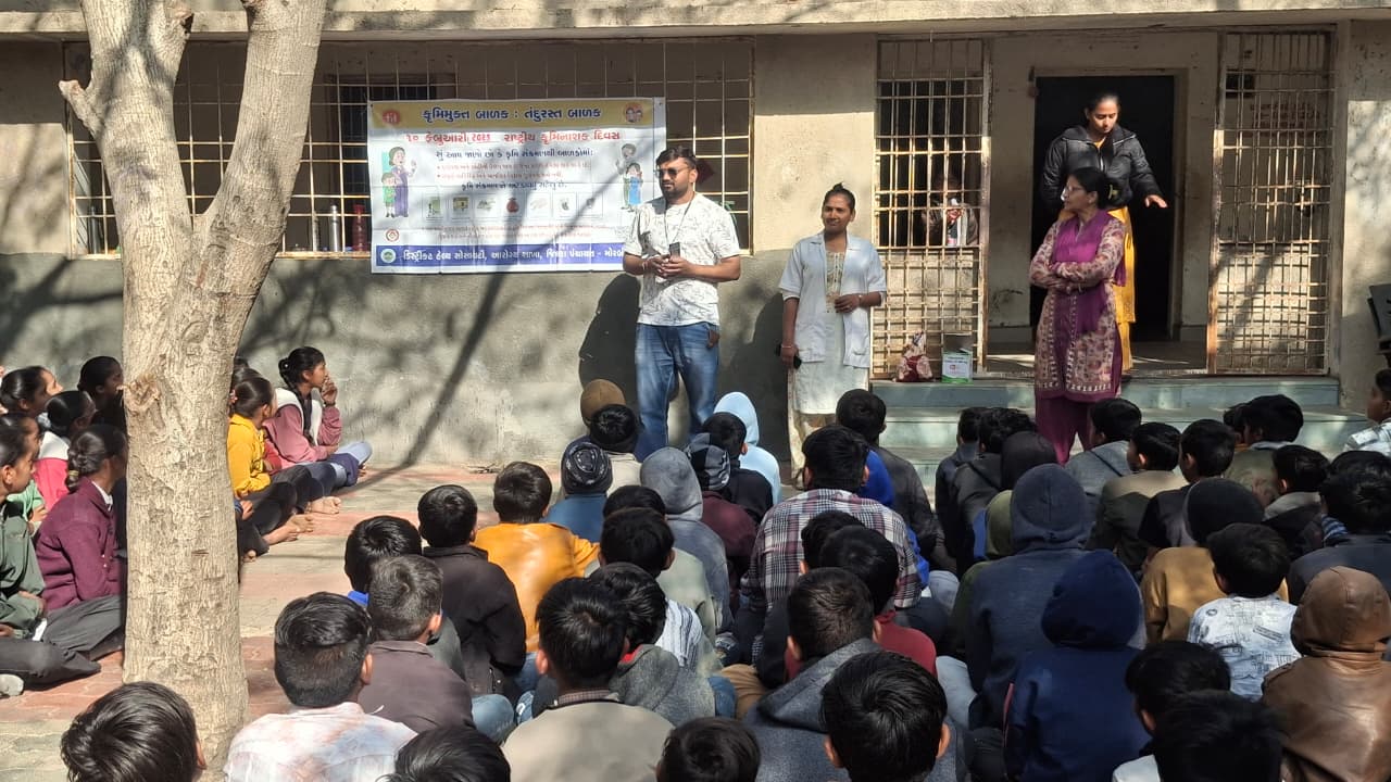 मोरबी आयुष्मान आरोग्य मंदिर पनेली द्वारा राष्ट्रीय कृमि मुक्ति दिवस मनाया गया।