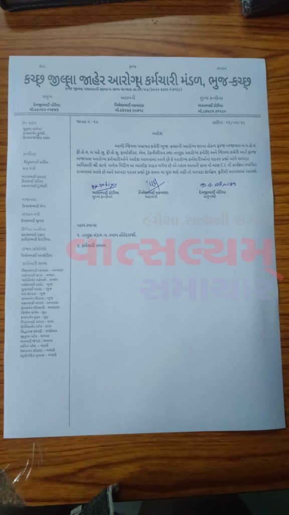 कच्छ जिले में हेल्थ वर्कर्स के पेंडिंग मामलों का सुखद अंत: मंगलवार का ‘मास सीएल’ और धरना कार्यक्रम स्थगित