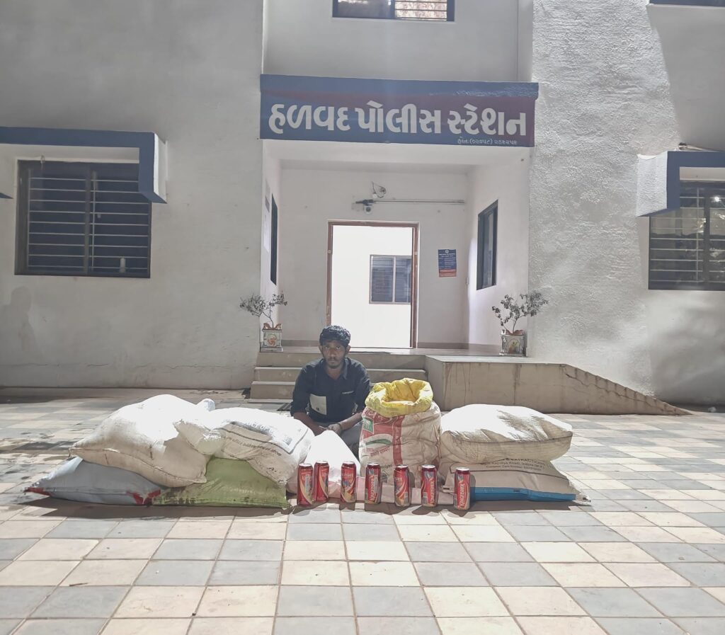 हलवद: हलवद में एक घर से देसी शराब की भट्टी और बीयर के टिन के साथ एक गिरफ्तार