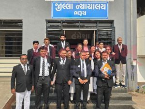 भरूच डिस्ट्रिक्ट लॉयर्स बार एसोसिएशन ने भरूच डिस्ट्रिक्ट कोर्ट के एडिशनल डिस्ट्रिक्ट जज एच.एस. गांधी पर वकीलों को परेशान करने के आरोपों के खिलाफ गांधी निशान के नीचे हड़ताल का ऐलान किया है। बार एसोसिएशन के फैसले के मुताबिक, जब तक हाई कोर्ट सही कार्रवाई नहीं करता, वकील हर दिन एक घंटे के लिए संबंधित जज की कोर्ट के बाहर हड़ताल करेंगे।