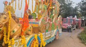 राम मंदिर के उद्घाटन के उपलक्ष्य में मेघराज के वलुना गांव में एक भव्य जुलूस निकाला गया।