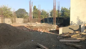 सागबारा के सीमामली गांव में एक स्कूल के कमरे के निर्माण में ठेकेदार घटिया सामग्री का इस्तेमाल कर रहा है।