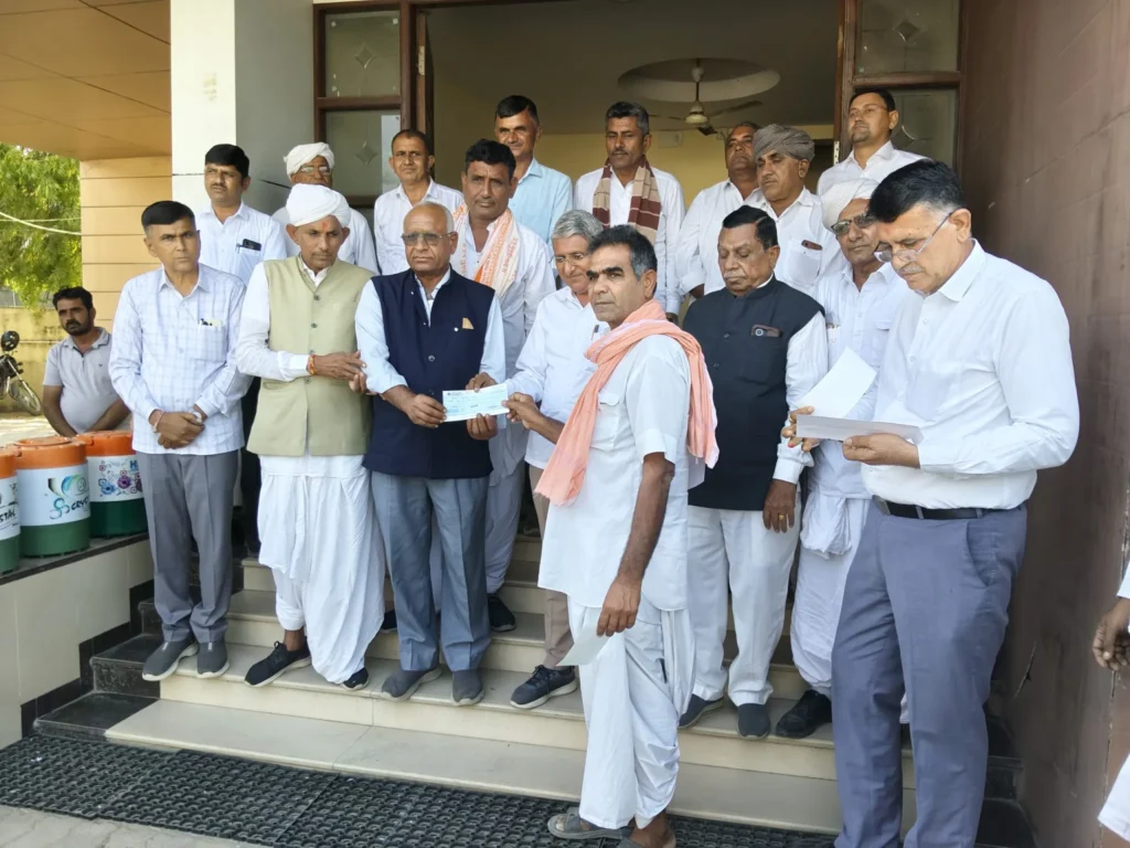 इसी योजना के तहत आज दिनांक 26/12/2025 शुक्रवार को थराद मार्केट यार्ड में एक सम्माननीय एवं संवेदनशील कार्यक्रम आयोजित किया गया। जिसमें माननीय अध्यक्ष शैलेशभाई पटेल, निदेशक मंडल एवं सचिव बी.एम. पटेल की उपस्थिति में दुर्घटना में मृत चार मृतकों के वारिसों को एक-एक लाख रुपये की दर से कुल चार लाख रुपये के चेक प्रदान किये गये।