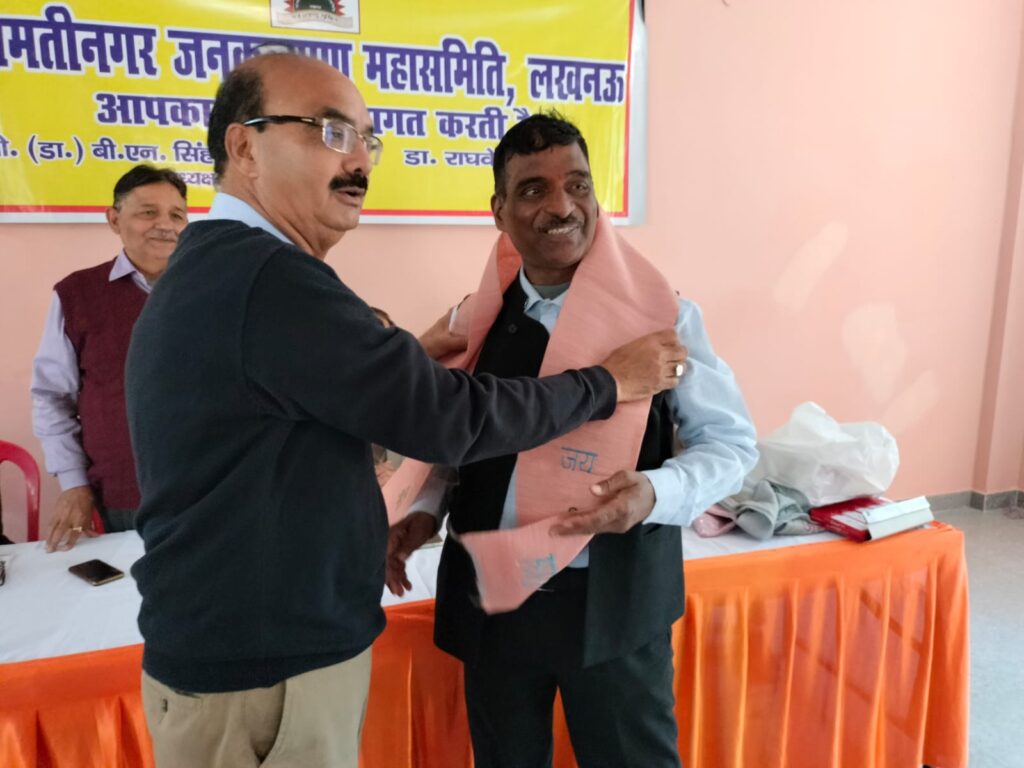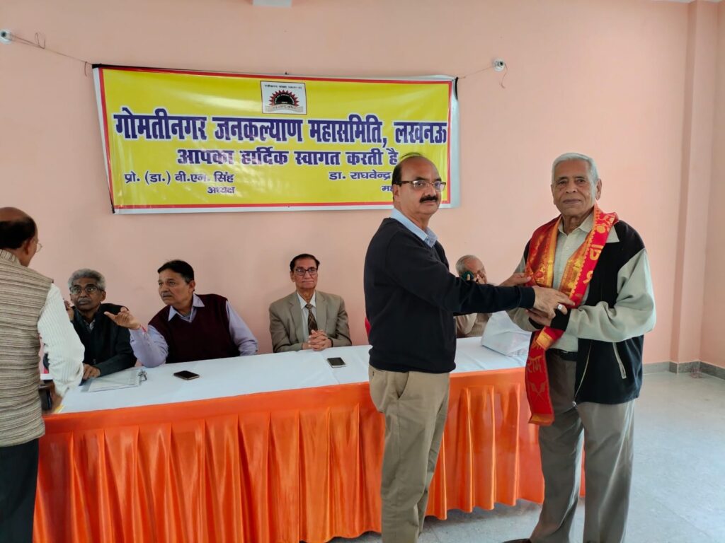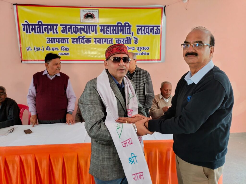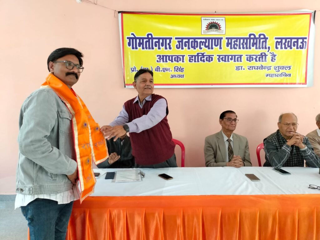 गोमती नगर जनकल्याण समिति अपनी 107 समितियों द्वारा विगत 32 वर्षों से जनहित के कार्यों यथा अवस्थापना, पर्यावरण, स्वास्थ्य, शिक्षा, रोजगार,जलवायु एवं अन्य जनहित के कार्यों को तन मन एवं धन से निस्वार्थ भाव से समर्पित भावना के अनुसार कर रही है।गोमतीनगर जनकल्याण महासमिति की कार्यपालिका समिति की बैठक नक्षत्र वाटिका,गोमतीनगर में संपन्न हुई। बैठक में महासमिति के वार्षिकोत्सव में महासमिति के मुख्य संरक्षक माननीय रक्षा मंत्री राजनाथ सिंह जी को आमंत्रित कर उनकी उपस्थिति में करने का सर्वसम्मति से निर्णय लिया गया।बैठक में पूर्व बैठक के एजेंडा की पुष्टि करते हुए सक्षम महिलाओं को आत्मनिर्भर बनाने हेतु सिलाई मशीन दिए जाने हेतु,विशिष्ट विभूतियों को सम्मानित करने,मंच संचालन करने, मंच की व्यवस्था,सांस्कृतिक कार्यक्रमों के आयोजन,स्मारिका के प्रकाशन, महासमिति की बैठकों को संजय निगम सचिव द्वारा कराए जाने,अन्य समितियों के कार्यवाही हेतु अभिनव शुक्ला संगठन मंत्री द्वारा करने,महिलाओं को सैनिटरी पेड दिए जाने, कोषाध्यक्ष की आय व्यय की रिपोर्ट,सभी उपखंड समितियां के जून 2026 तक चुनाव कराने, वार्षिकोत्सव में सभी उपखंड समितियां से कम से कम 100 लोगों के साथ प्रतिभाग करने हेतु प्रस्ताव पारित किया गया।रक्षा मंत्री जी को गोमती नगर में ओपन जिम, सोलर लाइट, सभी रेलवे क्रॉसिंग पर ऊपरगामी सेतु/अंडरपास निर्माण, वीजा सेंटर एवं नई एयर स्ट्रिप को बनाने में सहयोग करने हेतु धन्यवाद ज्ञापित किया गया।बैठक में महा समिति के अध्यक्ष डॉ बी एन सिंह महासचिव डॉक्टर राघवेंद्र शुक्ला सचिव व कार्यवाहक महासचिव कर्नल ए एन पांडे, सचिव संजय निगम , के के मौर्य, सी जी नायर, कोषाध्यक्ष पी आर पांडे,संगठन मंत्री अभिनव शुक्ला, महिला प्रभारी नीलम सिंह, मीडिया प्रभारी राजेश श्रीवास्तव, सांस्कृतिक सचिव आर डी मौर्य ,रवि तोमर कार्यालय प्रभारी, अमित मिश्रा ,आलोक माथुर, अभिषेक श्रीवास्तव,पंकज,दर्शनपाल अरोरा सहित समितियो की समस्त महिला प्रभारी एवं पदाधिकारी उपस्थित थे। अंत में अध्यक्ष डॉक्टर बी एन सिंह द्वारा सभी सदस्यों से महासमिति के हित में कार्य करने तथा वार्षिकोत्सव को सफल बनाने हेतु तन मन से जुड़ने का आवाहन करते हुए बैठक समाप्त की घोषणा की गई।