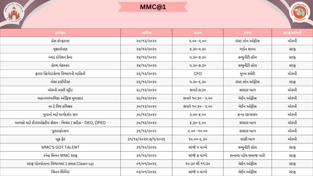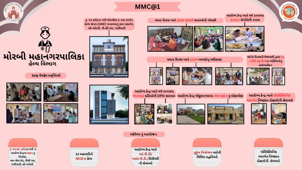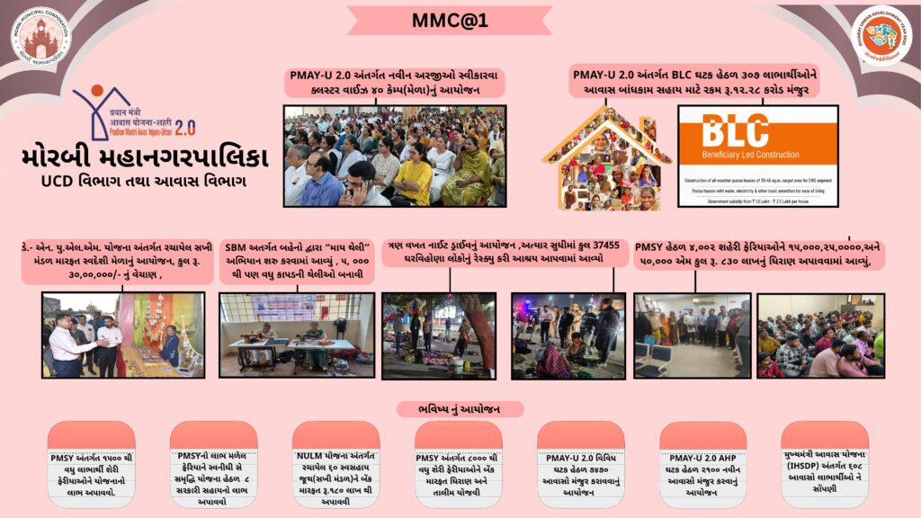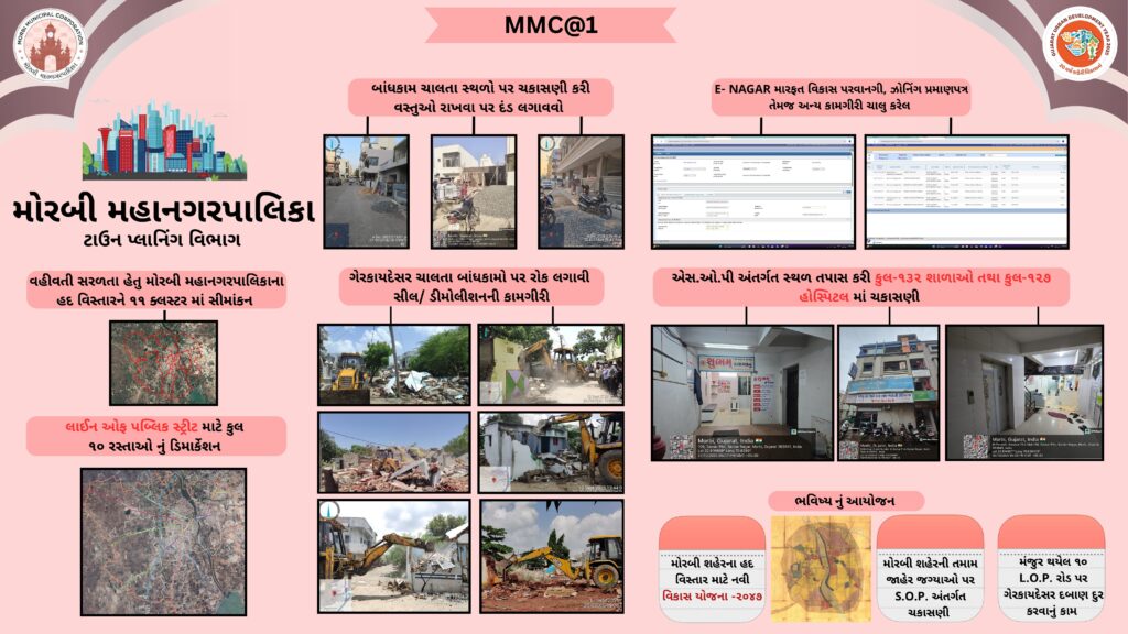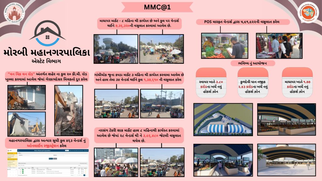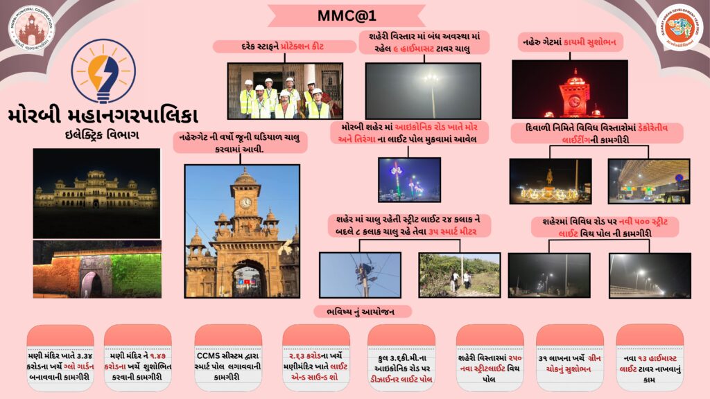 साल 2025 के पहले दिन, सरकार ने शहरी विकास को तेज़ करने के लिए 09 म्युनिसिपल कॉर्पोरेशन बनाए और मोरबी के लोग इस क्रांतिकारी बदलाव के फ़ायदेमंद बने और मोरबी को भी एक म्युनिसिपल कॉर्पोरेशन का तोहफ़ा मिला। सरकार के लोगों की भलाई के विज़न को पूरा करने के लिए, मोरबी म्युनिसिपल कॉर्पोरेशन ने इस एक साल के दौरान मोरबी शहर में एडमिनिस्ट्रेटिव आसानी, इंफ्रास्ट्रक्चर सुविधाओं और लोगों की भलाई के क्षेत्र में लगातार बड़े बदलाव किए हैं और लगातार करता आ रहा है और आने वाले समय में भी इसी रफ़्तार से काम करता रहेगा।