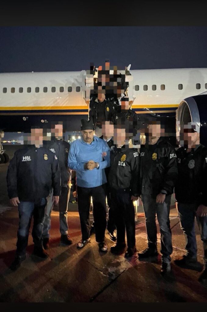 वेनेजुएला के प्रेसिडेंट निकोलस मादुरो को ले जा रहा प्लेन न्यूयॉर्क के स्टुअर्ट एयर नेशनल गार्ड बेस पर लैंड कर गया है। लैंडिंग के बाद मादुरो को कड़ी सिक्योरिटी के बीच प्लेन से उतार लिया गया। चश्मदीदों के मुताबिक, एक दर्जन से ज़्यादा फेडरल एजेंट्स ने उन्हें घेर लिया था, जबकि रनवे पर कुल तीन दर्जन से ज़्यादा US फेडरल एजेंट्स मौजूद थे। इससे पहले, प्रेसिडेंट डोनाल्ड ट्रंप ने एक चौंकाने वाली फ़ोटो शेयर की थी, जिसमें निकोलस मादुरो को US के एक वॉरशिप पर हथकड़ी और आंखों पर पट्टी बांधे दिखाया गया था।
